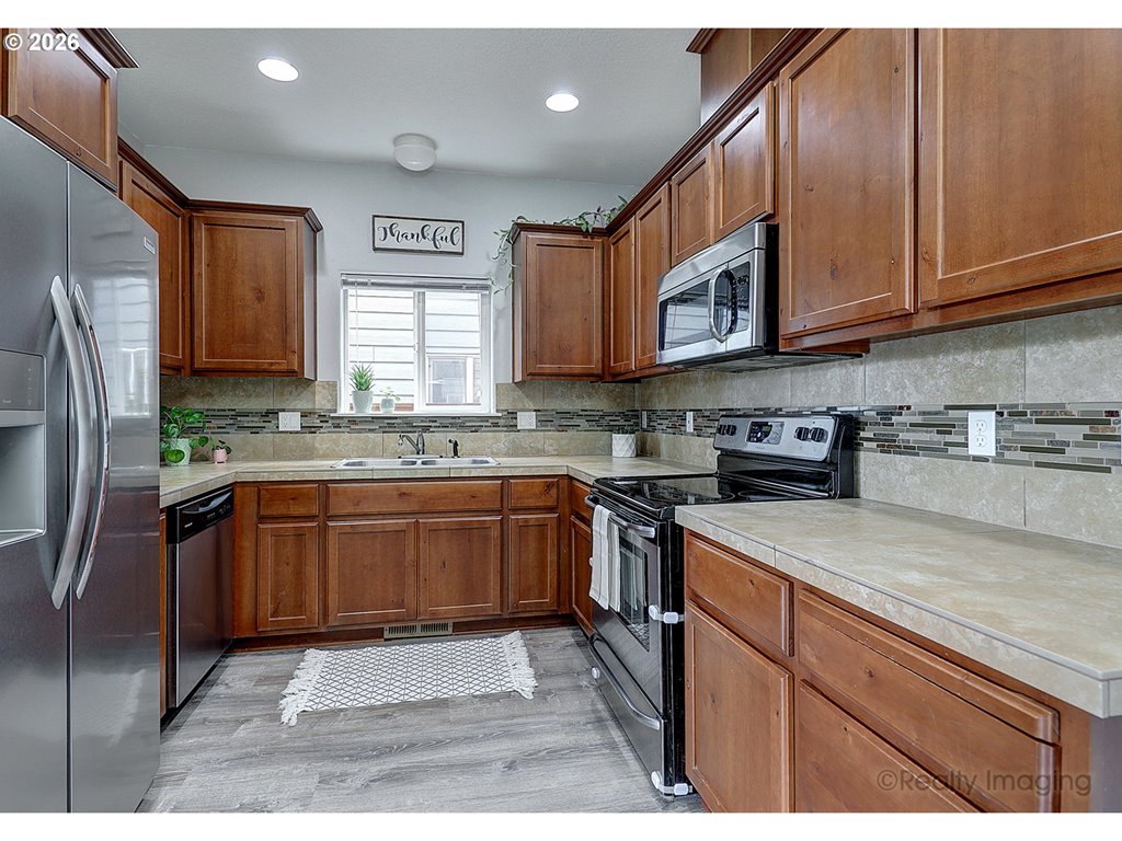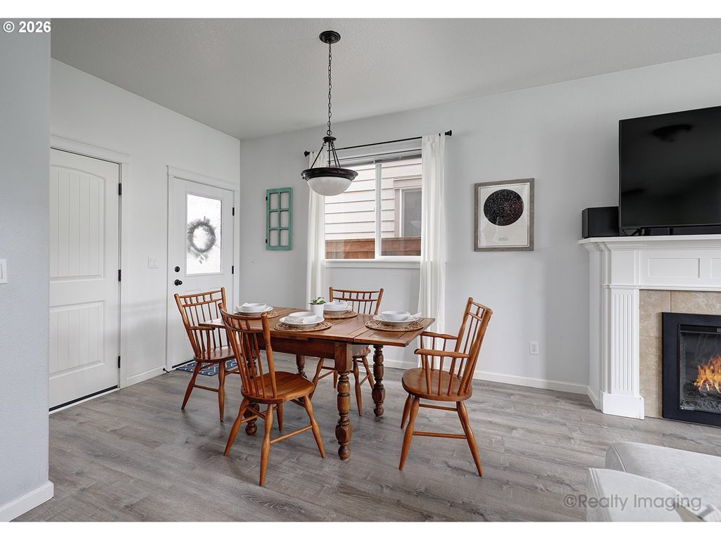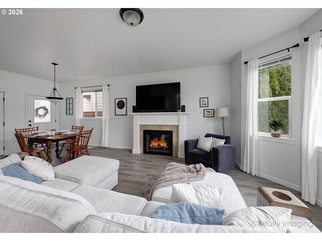 Welcome home to this inviting 3 bedroom, 2.5 bath detached home tucked into a quiet Forest Grove neighborhood. With 1,505 square feet of comfortable living space, this home blends modern convenience with everyday coziness. The open-concept main floor features luxury vinyl plank flooring, stainless steel appliances, a new built-in microwave, and a cozy fireplace – perfect for both relaxing nights in and easy entertaining. Step outside to the oversized, private front patio, ideal for hosting friends or enjoying a quiet morning coffee. Upstairs, the oversized primary bedroom impresses with vaulted ceilings and two closets, including a walk-in. Forced air heating and air conditioning keep things comfortable year-round, and the attached two-car garage adds everyday practicality. Refrigerator, washer, and dryer are all included. Conveniently located near Pacific University, local wineries, parks and trails, and downtown Forest Grove, this home offers a great balance of peaceful living with easy access to everything you love about the area.