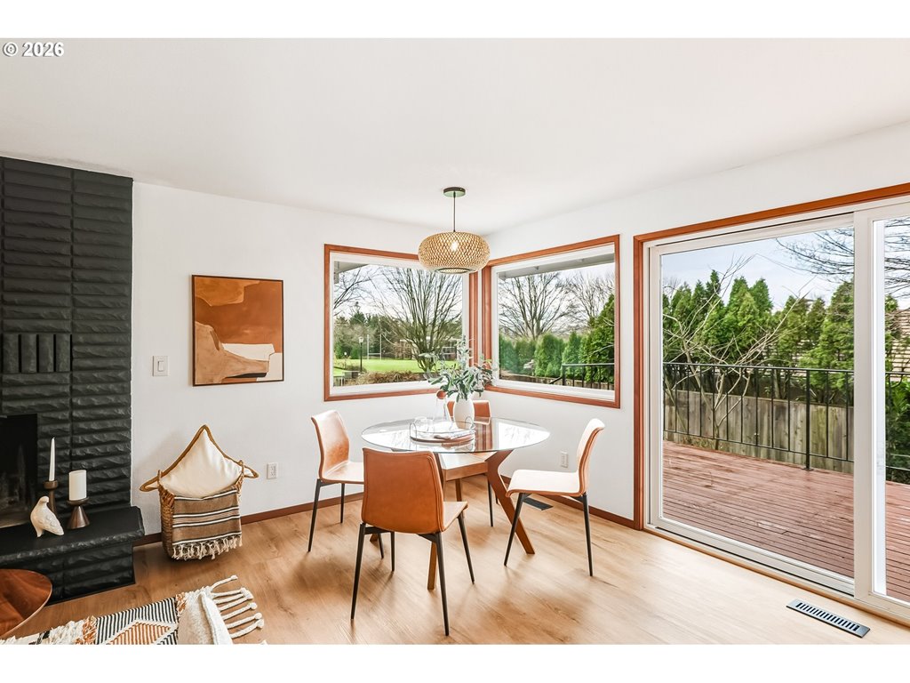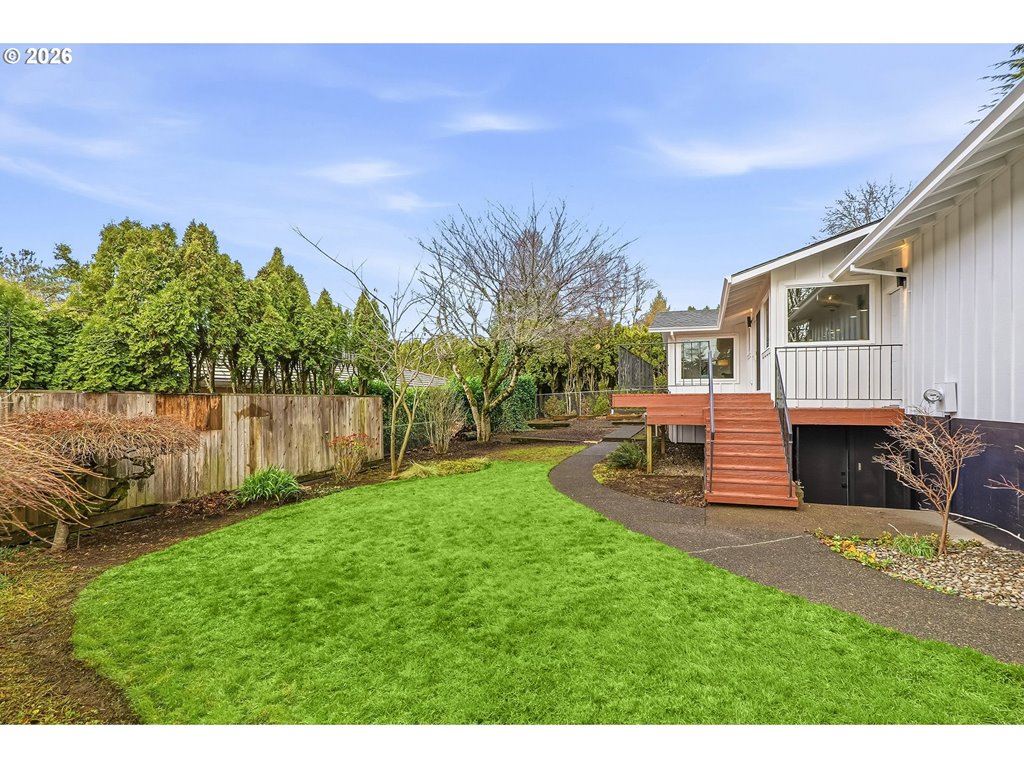 Modern Main-Floor Suite Across from Reed College.Directly opposite the Reed College athletic fields, this 1975 ranch reimagines classic suburban form with an emphasis on light, flow, and livability—all anchored by a rare primary suite on the main floor.The entry sets a quiet, intentional tone: parquet hardwood, clean lines, and built-in storage that feels integrated rather than added on. From there, the main level opens into a sequence of bright, connected spaces. Oversized windows frame treetops and sky, flooding both living and family rooms with natural light. At the center, the kitchen functions as a true hub— plank floors, granite surfaces, stainless appliances, and an island that transitions seamlessly to a large elevated deck via sliding glass doors for sunset entertainment. The primary suite on the main floor reads like a private wing: a walk-in closet, double-sink bath, and easy proximity to the public spaces without sacrificing separation. It’s a layout that privileges ease and aging-in-place, as well as day-to-day comfort.Below, a daylight basement expands the program of the home. Two generous flex spaces with a fireplace and separate entrance suggest multiple futures—ADU conversion, multi-generational living, studio, office, or student housing—without compromising the integrity of the main level.Outside, the landscape balances structure and softness: mature plantings, a thoughtful mix of sun and shade, stair access from the upper deck, and defined garden beds that invite cultivation rather than maintenance.Positioned at the intersection of several highly walkable Southeast Portland neighborhoods, including nearby Woodstock, the home sits within easy reach of breweries, the Crystal Springs Rhododendron Garden, Eastmoreland Golf Course, light rail, and the layered urban fabric surrounding Reed. It’s a house that quietly supports a range of ways to live, work, and share space—without shouting for attention. Fully fenced, turn the key and enjoy.