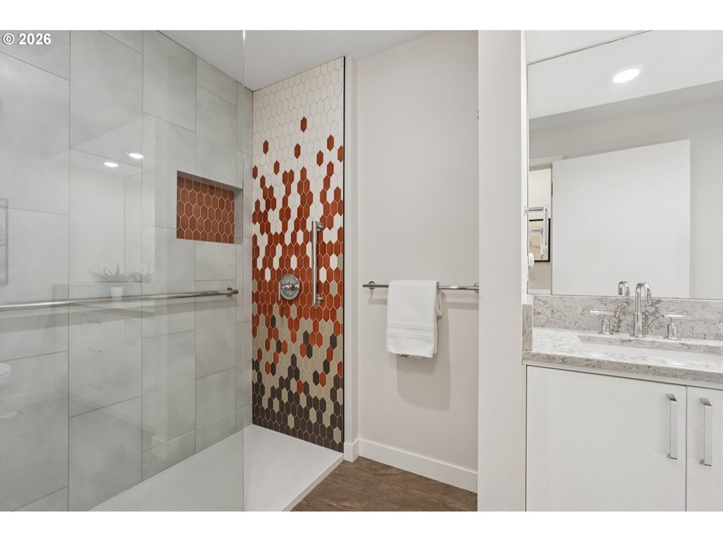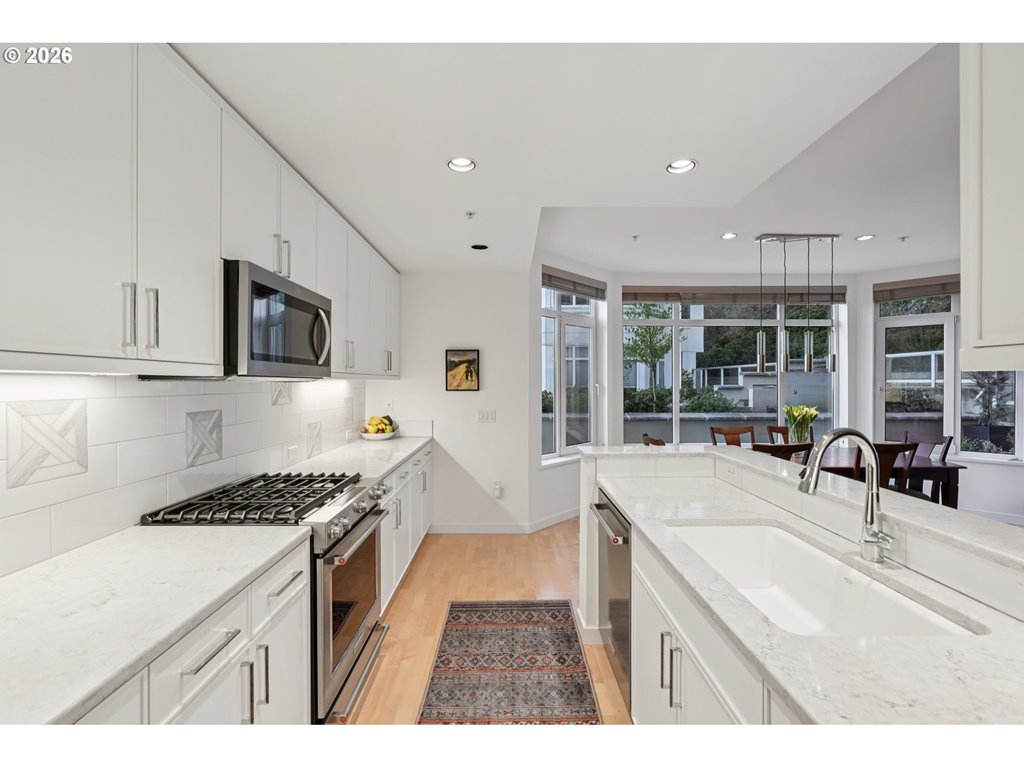 Beautifully updated one-level condo in the highly desirable Westover Condominium. This 2-bedroom, 2-bath home offers 1,287 square feet of thoughtfully designed living space, featuring hardwood floors throughout, an open layout, custom high-end built-ins, and a gas fireplace that adds warmth and character. The kitchen and bathrooms were extensively remodeled by Neil Kelly, showcasing quality craftsmanship and timeless design. The chef’s kitchen includes quartz countertops, stainless steel appliances, and a designer tile backsplash. The well-designed floor plan flows seamlessly, making it ideal for both everyday living and entertaining. Enjoy covered outdoor access from the living room and both bedrooms, creating a smooth indoor-outdoor connection surrounded by professionally landscaped grounds. Additional highlights include a spacious utility room, deeded parking, and dedicated storage. The Westover is a secure building offering excellent amenities, including a gym, library, meeting room, and four elevators. Ideally located in one of NW Portland’s most sought-after neighborhoods, just blocks from NW 23rd and the Alphabet District, with easy access to dining, coffee shops, shopping, and cultural attractions. Nearby outdoor destinations include Hoyt Arboretum, Forest Park, Washington Park, Lower Macleay Park, and the Lower Macleay Dog Park. This condo offers the perfect blend of privacy, comfort, and effortless city living.