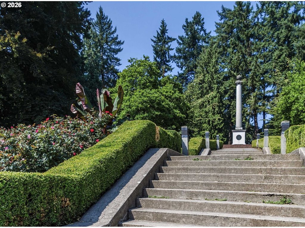 Perched on the top floor at the corner of 2393 Park Place, this corner two-bedroom residence captures lovely mountain and city views with a subtle retro charm. Set at the base of Portland’s historic Washington Park, the location offers effortless access to forested hiking trails, leisurely strolls through the Rose Garden and the boutiques, cafés and dining of Northwest and downtown Portland. Bathed with natural light, the penthouse-level setting provides a heightened sense of privacy and elevation, overlooking the neighborhood extending out to the view while also enjoying a tranquil scene across the landscaped grounds and community pool below. A generous balcony seamlessly extends the living space outdoors—ideal for entertaining, container gardening, or quiet moments spent taking in the ever-changing scenery. The thoughtfully designed floor plan features a serene primary suite with ensuite bath, a privately positioned guest bedroom, in-unit laundry and abundant storage. A well-scaled dining area sits adjacent to the kitchen and balcony, enhancing both daily living and entertaining. Parking and storage are included.